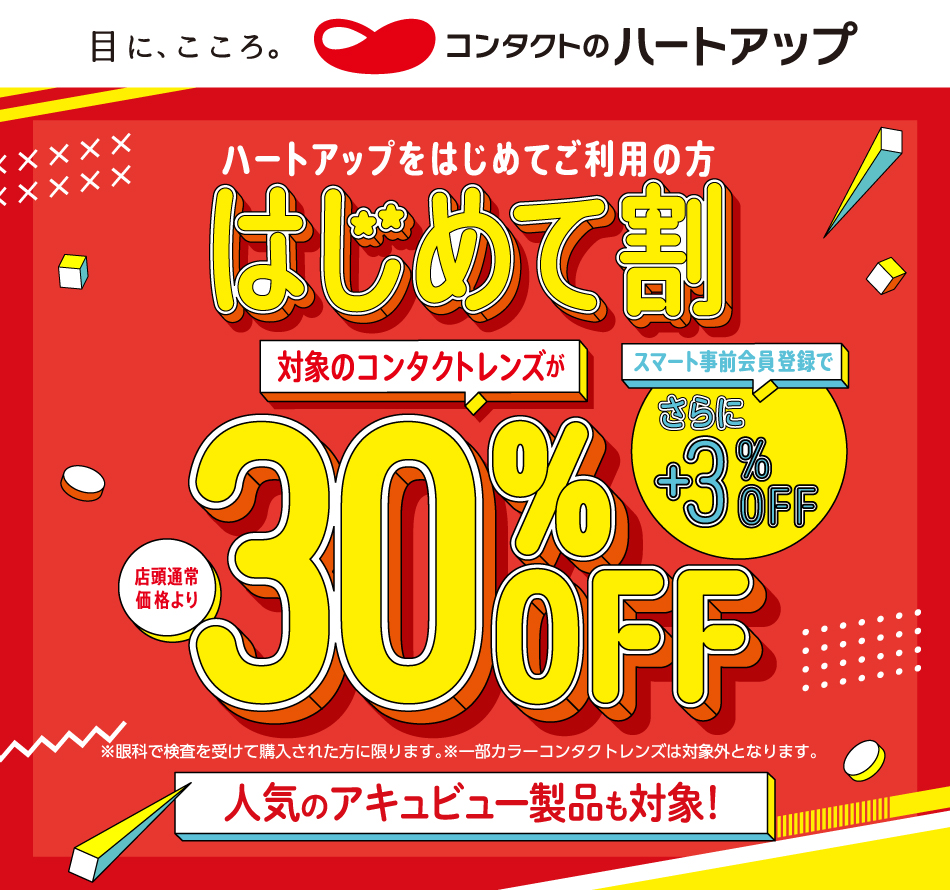 ハートアップを初めてご利用の方は、コンタクトレンズが店頭通常価格より30%OFF