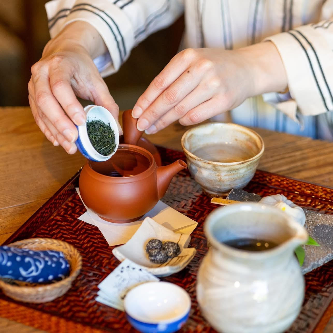 常滑焼の器で楽しむ、こだわりのいっぷくセット。やきものの町・常滑の歴史と温もりを感じながら、香り高い煎茶をオリジナルスイーツと共にゆっくりとご堪能いただけます。焼き物の魅力に包まれた空間で、ほっと一息つけるひとときを。旅の途中の休憩や、ものづくり散策の合間にもおすすめです。